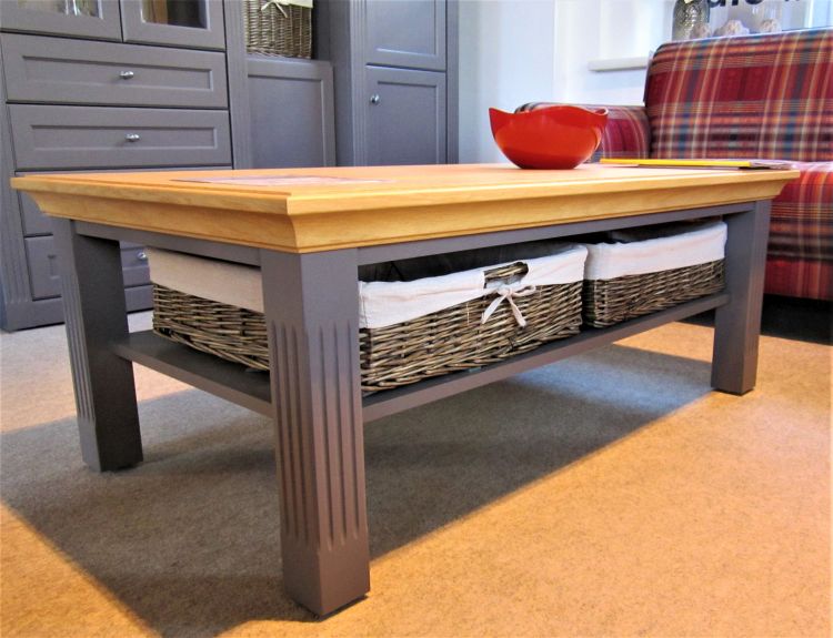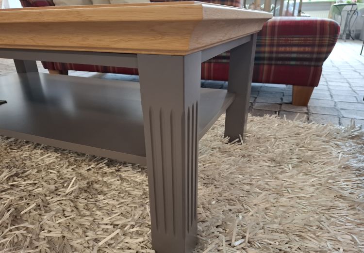 Der Couchtisch Maison im Landhaus-Stil stammt aus dem regionalen Unternehmen Wehrsdorfer Werkstätten und zeigt aufwendig gearbeitete Akzente an den Tischbeinen. Die Farbkombination aus Lack Graphit und Asteiche verleiht dem Tisch eine ruhige, wohnliche Ausstrahlung und fügt sich sowohl in klassisch als auch in modern eingerichtete Wohnzimmer ein.