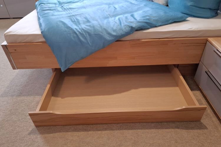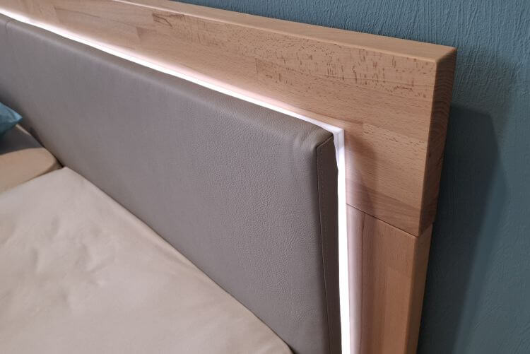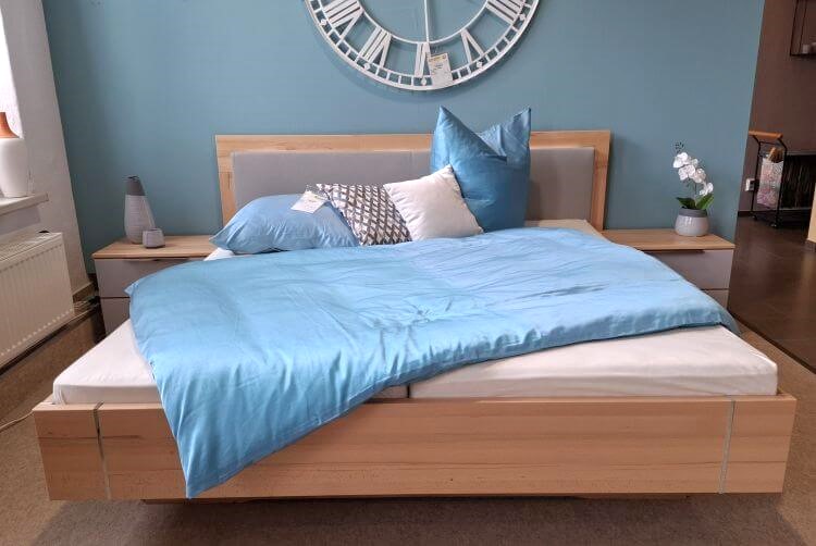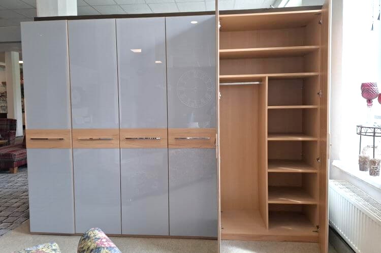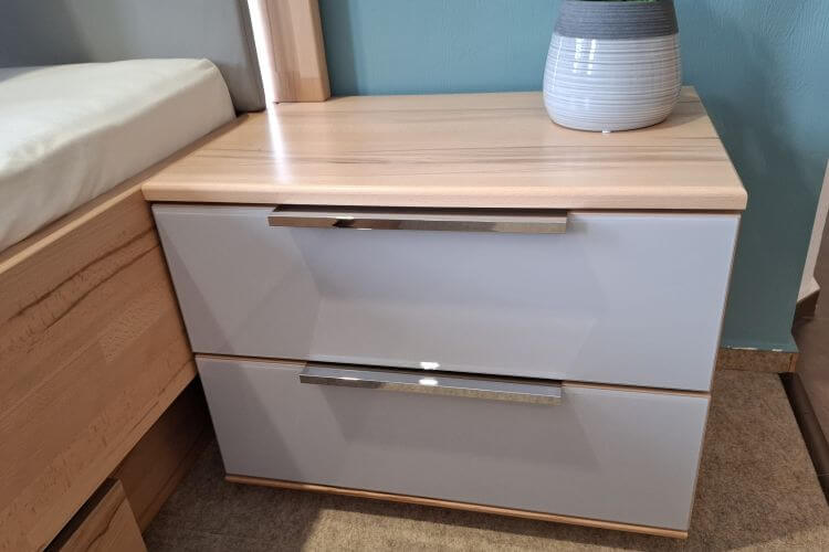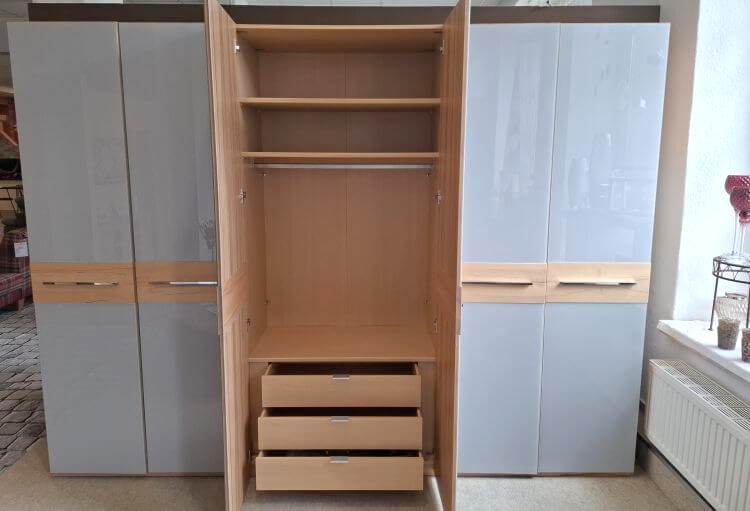 Wenn Sie Ihr Schlafzimmer wohnlich und gleichzeitig modern einrichten möchten, ist dieses Abverkaufs-Modell genau das Richtige für Sie. Das Schlafzimmer „LS 003919″ überzeugt vor allem durch die Kombination aus Kernbuche teilmassiv mit weißen Glasfronten und zusätzlichen Extras wie LED-Beleuchtung am Kopfteil, Bettschubkästen und Innenspiegel.
