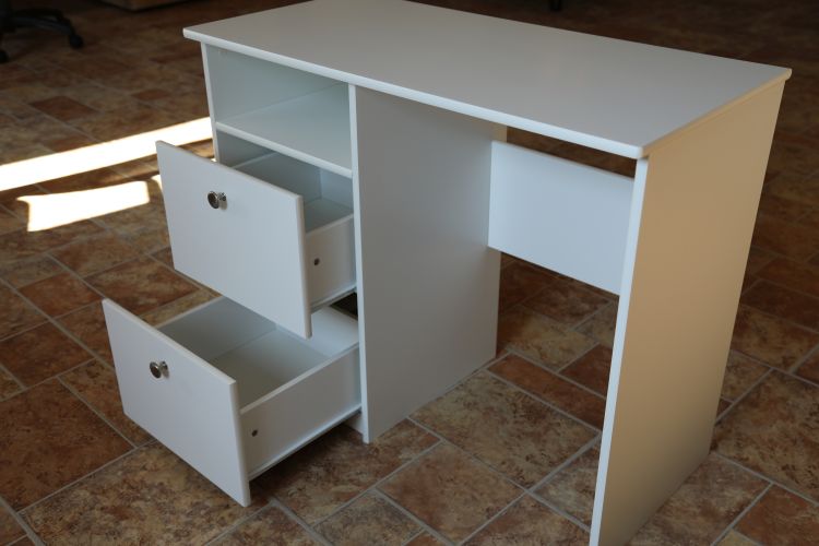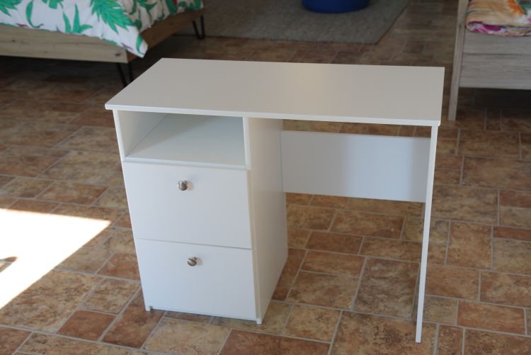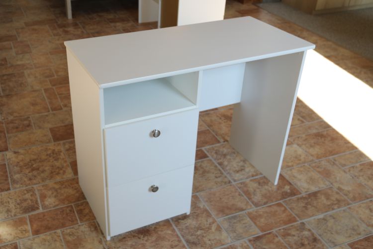 Sie suchen einen Schreibtisch und haben wenig Platz? Dieses kompakte Modell in Weiß passt auch in kleinere Jugend- und Arbeitszimmer. Ein offenes Fach und zwei Schubkästen auf der linken Seite schaffen Stauraum für Stifte, Bücher und Büromaterial, die klare Linienführung und die neutrale Farbgebung fügen sich in nahezu jede Einrichtung ein.